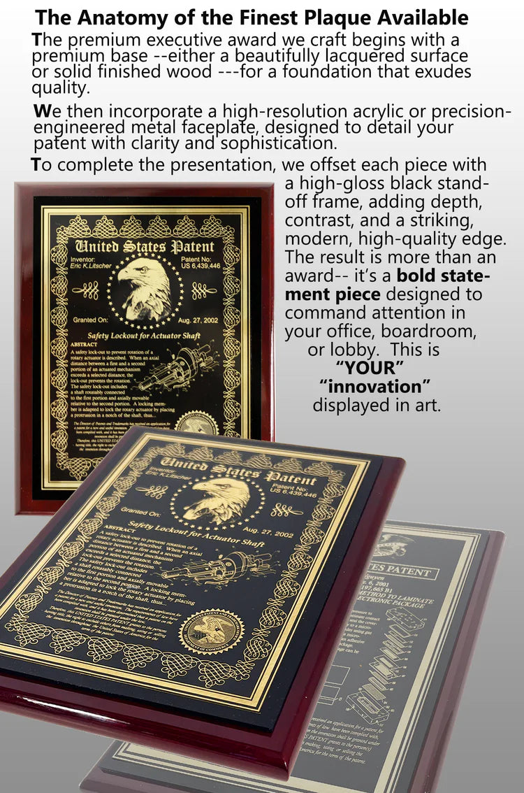 Introducing the Executive Patent Plaque -- Another "Great" Award for the Discerning Innovator